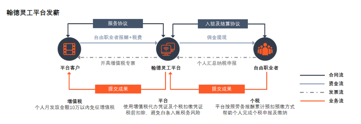 平台通过整合社会化的零散劳动力资源,为企业提供从招募、管理到结算的全流程、平台化的连续劳务服务。